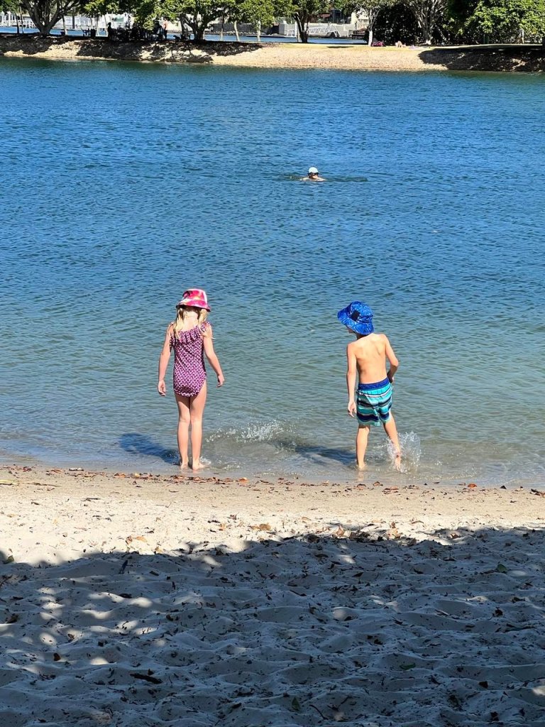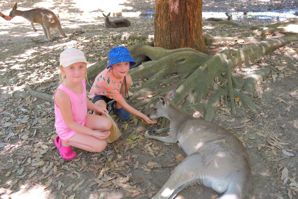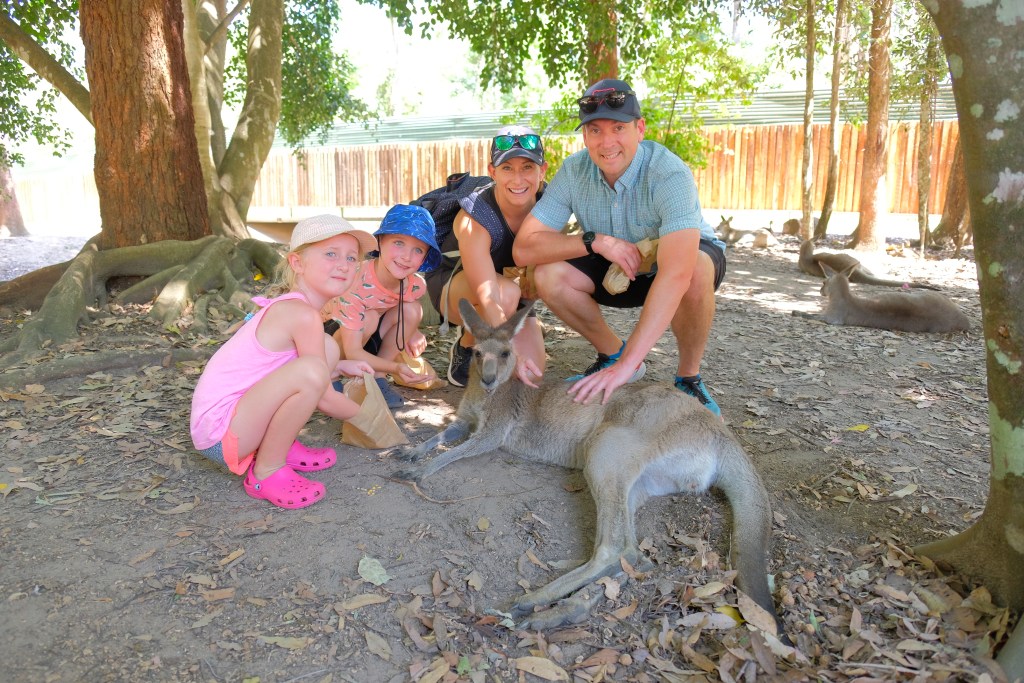 The time came where we had to move on and head toward Australia Zoo!!! To say our day there was great would be the biggest understatement I’ve ever made. Not many days are perfect but this one was, honestly! We splurged and booked a 5 hour tour and it was worth every dollar. It was 33C and the Zoo is HUGE, no really, you have to take a shuttle bus to get to some of the sections. Our tour included a covered golf cart, cold water, endless knowledge, a cuddle with a Koala (I almost cried), Roo Food and VIP seats to the Croc Show. Everything at the Zoo is well done and very organized. It’s the only Zoo we’ve been to where you know the animals are in the right place and are treated so very well. Our guide was amazing with us but especially with the kids. Jake and Lil are animal obsessed and had a couple hundred questions and she handled it all with patience and humour. We finished the day with ice cream and coffee at the Zoo spray park. It was a true highlight for us!