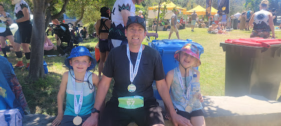 The kiddies and I found a popsicle (side note, it’s called an icy pole here…. I’m still trying to dissect that;) and waited for dad. Around the 2-hour mark, I got a text from Nick – It’s slow going. No Prob!! The kids and I made our selves useful and volunteered at the finish line. The kids handed out medals to the finishers and I unpacked them all and reloaded the kids. It turned out to be a great time.