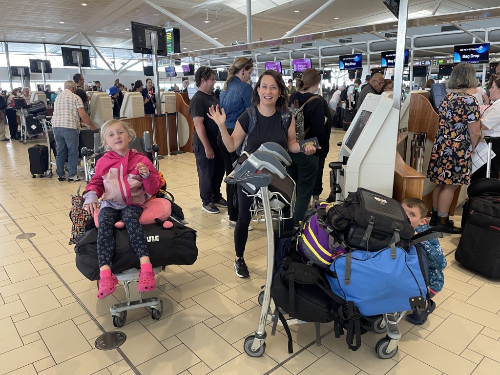 We were all sweaty, hungry and tired!! Boarding a small plane for the 1 hour flight from Vancouver to Edmonton was a complete shock to the kids and it was hilarious to see them being humbled after such a cushy flight across the ocean. Where are the TV’s? Why are these seats so small? Why don’t they have food? Kids, I hate to break it to you but this is our reality;)