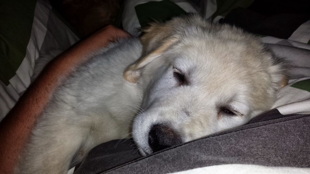 Great Pyrenees are typically used on farms as guard dogs – they are great at protecting livestock against coyotes. Our house used to back onto a golf course and we had a lot of coyotes and golfers, and Gunner took personal offence to both!!