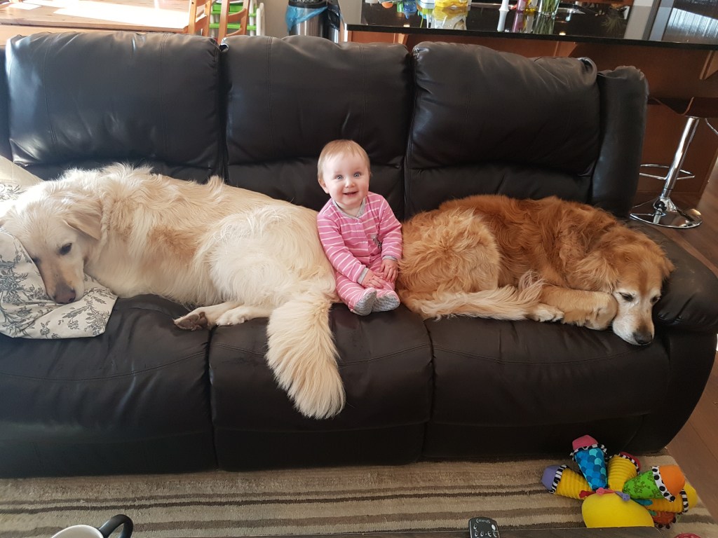 I can’t tell you how many times Gunner escaped out of our back yard. His recall was non-existent which was helpful…ugh BUT I eventually learned, after so many hours of chasing and calling and begging and yelling, that if I just fell to the ground and cried, he would come back!! His timing was always great too – ‘OMG, mom’s alone with twin 6-month-old babies. I should do a better job of protecting them and expand my perimeter. She’ll appreciate it so much’, I’m sure the golfers loved it too…. coming around a corner to find a giant dog rolling in the sand trap and then eyeing them up.