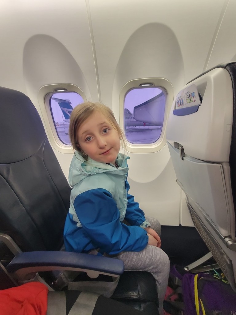 We had an early morning flight, and getting to the airport was one of the more stressful details. Weird, right!! Like, just call an Uber or a taxi like every other damn person;). I’ve had some pretty interesting Ubers, Lyfts, and Taxis in my day – honestly, probably enough for an entire blog post;). I was also prewarned by a few neighbors that these services can be unreliable that early in the morning especially to the airport. So, Nick spent some time calling and found us an airport transport company where you could book your ride ahead of time. They also provided a ‘Rudolph’ (a Yukon XL) with the nicest driver. We knew that the driver’s name was Willy, and no one was more excited than, you know, Lily. She was also bringing her stuffy named Millie, which led to her losing her mind and, of course, writing and performing an original song about the 3 of them. By the end of the drive, Willy couldn’t believe how many facts the kids knew about Rudolph and, really, how much they talked in general – maybe a little too much for 5 am;).
