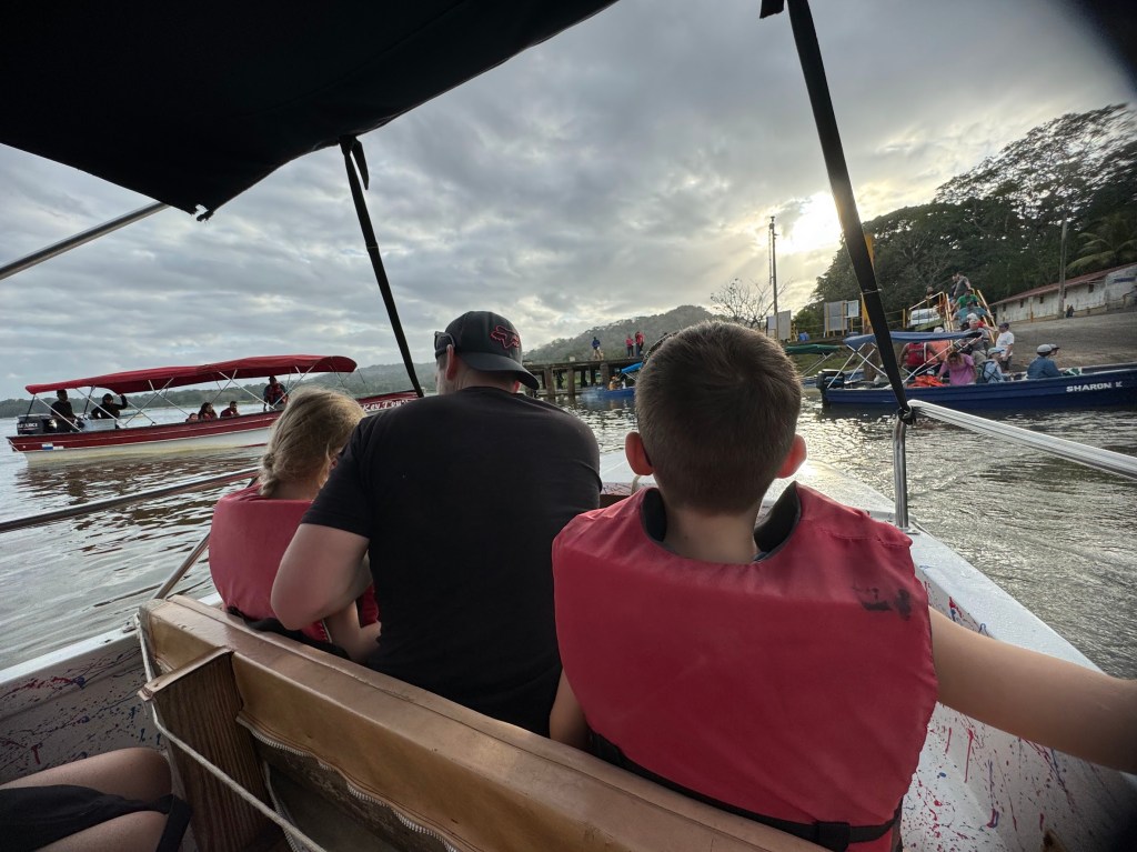The next stop was Bocas del Toro, a cluster of islands with amazing sandy beaches and clear water. We arrived in the port town called Almirante, and that’s when the insanity began; we didn’t quite know where we were headed, but not to worry, the people of Almirante were prepared for that. We were waved down in an instant – I guess it was very clear that we were tourists. We were directed to a parking spot and hooked up with a boat taxi to the island we were staying on. Saying that all of this was Chaotic is an understatement!! It was great to see how the kids handled the yelling in Spanish, the hustling and being directed to, hopefully, the right boat!