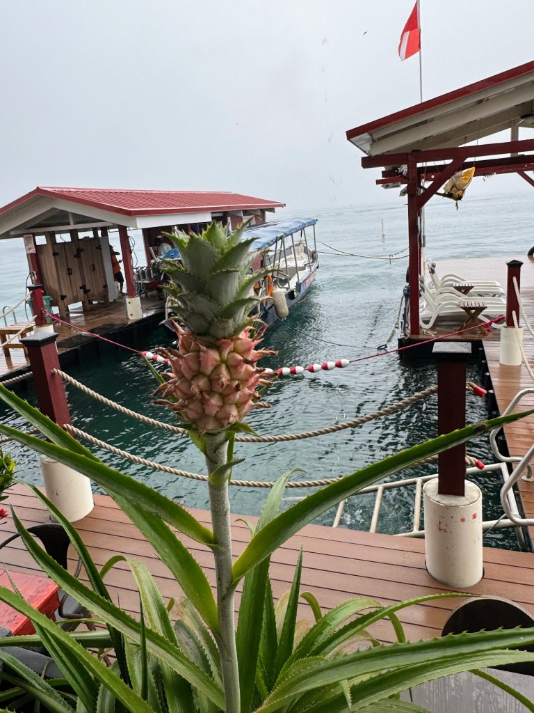 We had to catch a boat ride back to the mainland in the morning. We woke up, and it was raining but still 30C out. We packed up, walked to the boat dock, stuffed ourselves on a VERY full boat, and started the trek across the ocean. While we were in the middle of it all, I had the realization that what we were doing was absolutely insane!! It was stormy, we were in the middle of the ocean for 25 minutes, the boat was packed to the brim, and next to Jake and Lily was a boy with a couple of chickens on his lap!!! I mean, they were in a box, but still;).