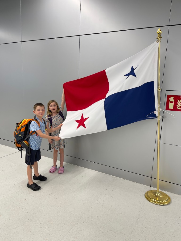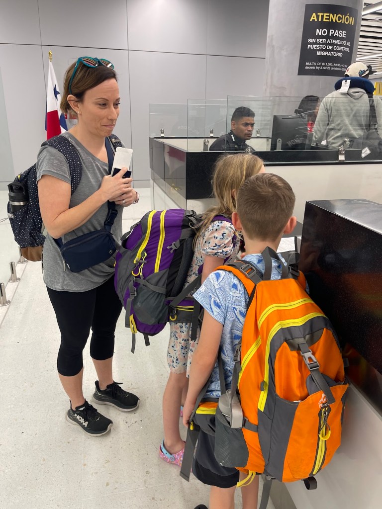 Panama City, here we come!! Another early morning, but when you’re excited and your bags are packed, it is not a hardship to get up and get going. We had a direct flight from Houston to Panama City – total travel time was around 4 hours – Not enough in the kid’s opinion;). We were now traveling as a family of 4, so it was easy!! The bathroom situation was the stressful consideration I hadn’t anticipated when traveling alone with the kids. To me, it’s easy, let’s all go to the Women’s, but Jake’s at an age now where that’s just not cool with him, and I’m uncomfortable letting him go alone in a super busy airport. We did our best to find family bathrooms and workarounds, but guess what else you must do?? Haul all your crap everywhere and lose your seats;). So, we welcomed Nick back with open arms!!!
