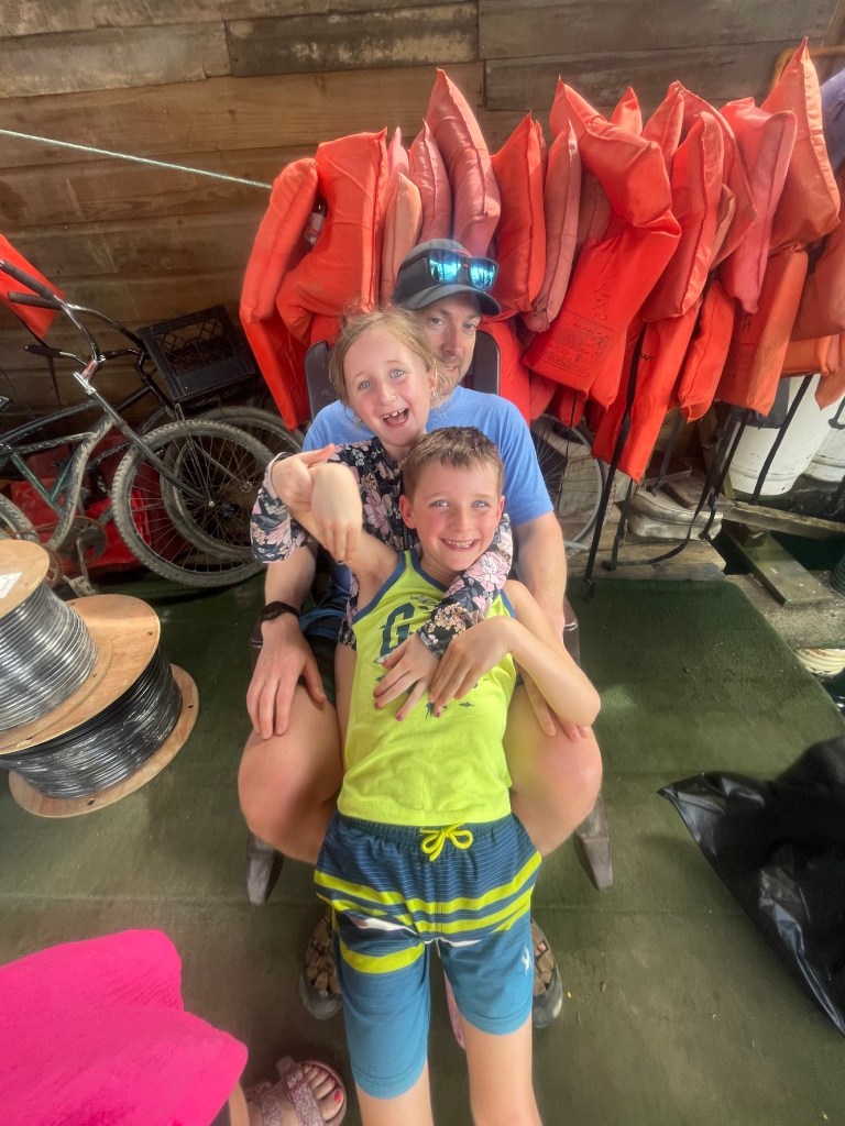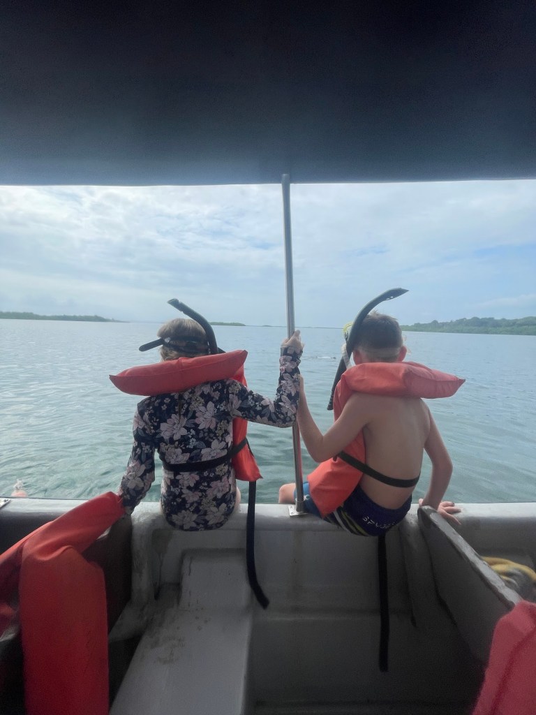 The island was fantastic – we didn’t have a ton of time there, but enough to fall in love. We did a day tour that included seeing dolphins, and let me tell you, they did not disappoint. It was so cool to see them jumping 5 feet in front of us!! We had some beach time and ended the day with snorkeling. The kids were sooooo pumped to snorkel, and Nick thought they would love it. I, on the other hand, knew the front they were putting on was to cover their nerves. Nick jumped in the water, and then the kids froze!! Oh, oh, is it our turn. You want us to just jump into the middle of the ocean, like right off this boat?? I sat and reassured them, and when they were ready, they each jumped in and clawed at Nick as if he were a life raft!!! See, I’m not the only one that tries to drown him now;). It didn’t take long, and they were off of him and on their own!! Another proud moment!