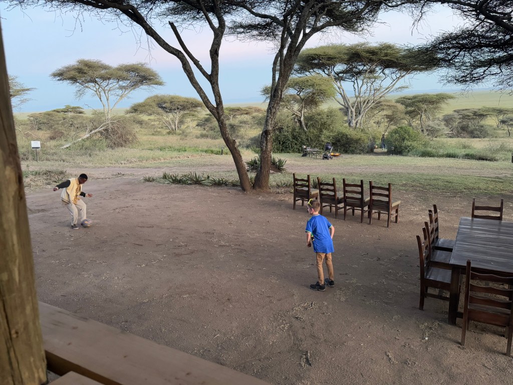 Soccer, Homework and a look at our tent at the Southern Serengeti Woodlands