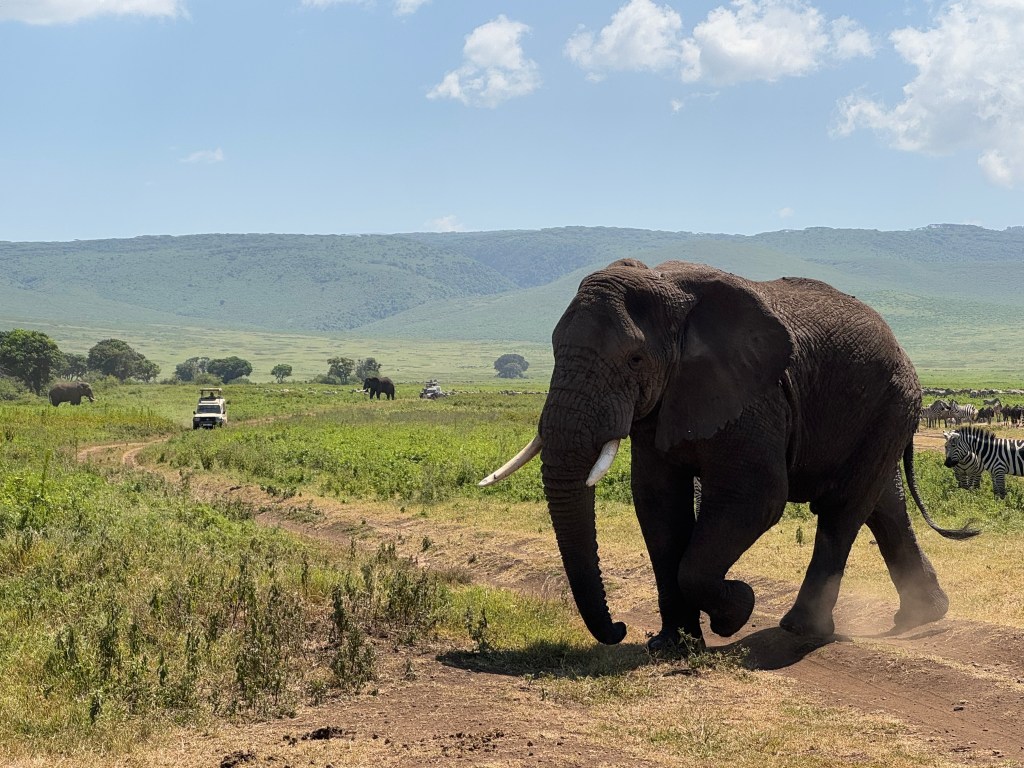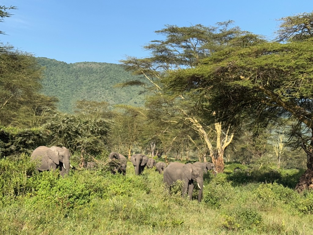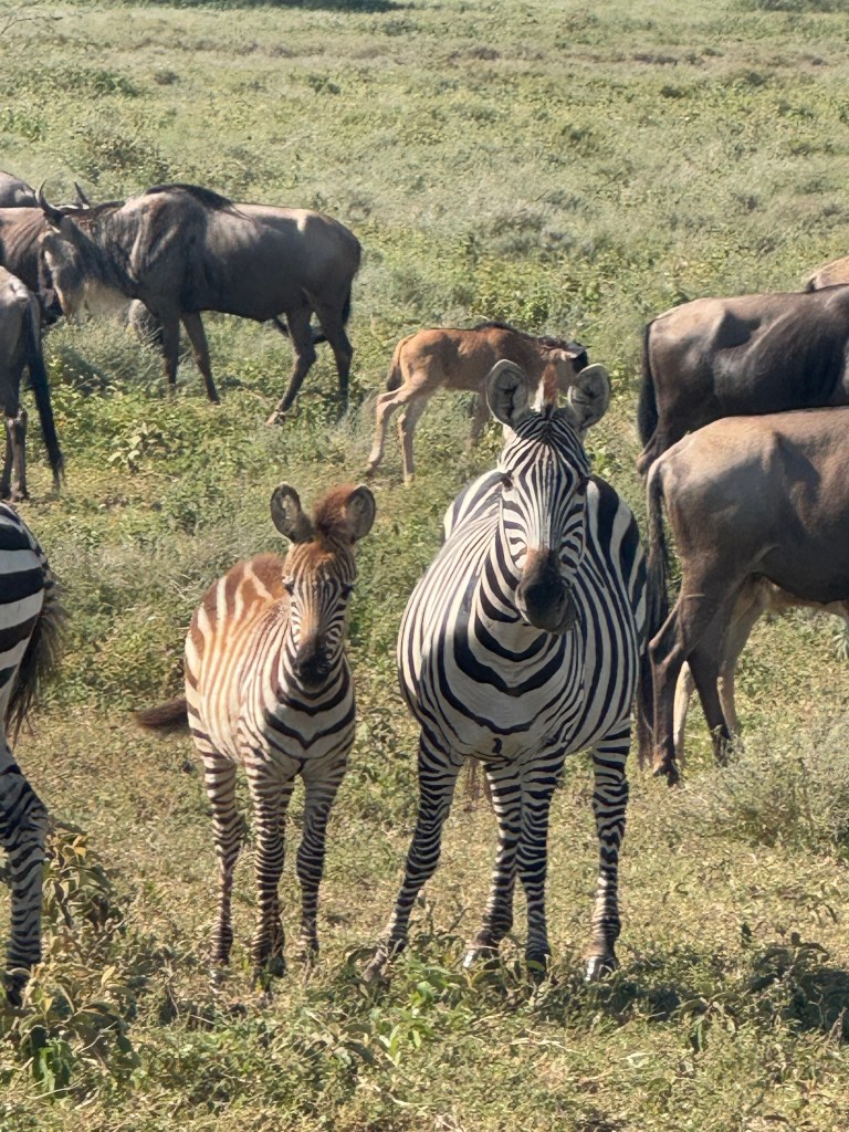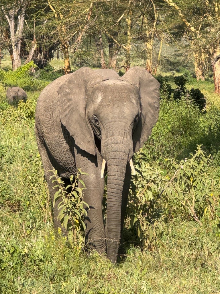 Crater Day!!!!. The Ngorongoro Crater CANNOT be missed!! It was such a highlight for us although I can assure you that all the other places we visited were well worth the effort. We got up extra early to catch up with the animals!!! The elephants absolutely STOLE the show. We came upon a heard that had a couple elephant calf’s that were under a year and watched them on the edge of our seats for an hour!!!! So entertaining and oh so wonderful. It’s something we will never forget!!